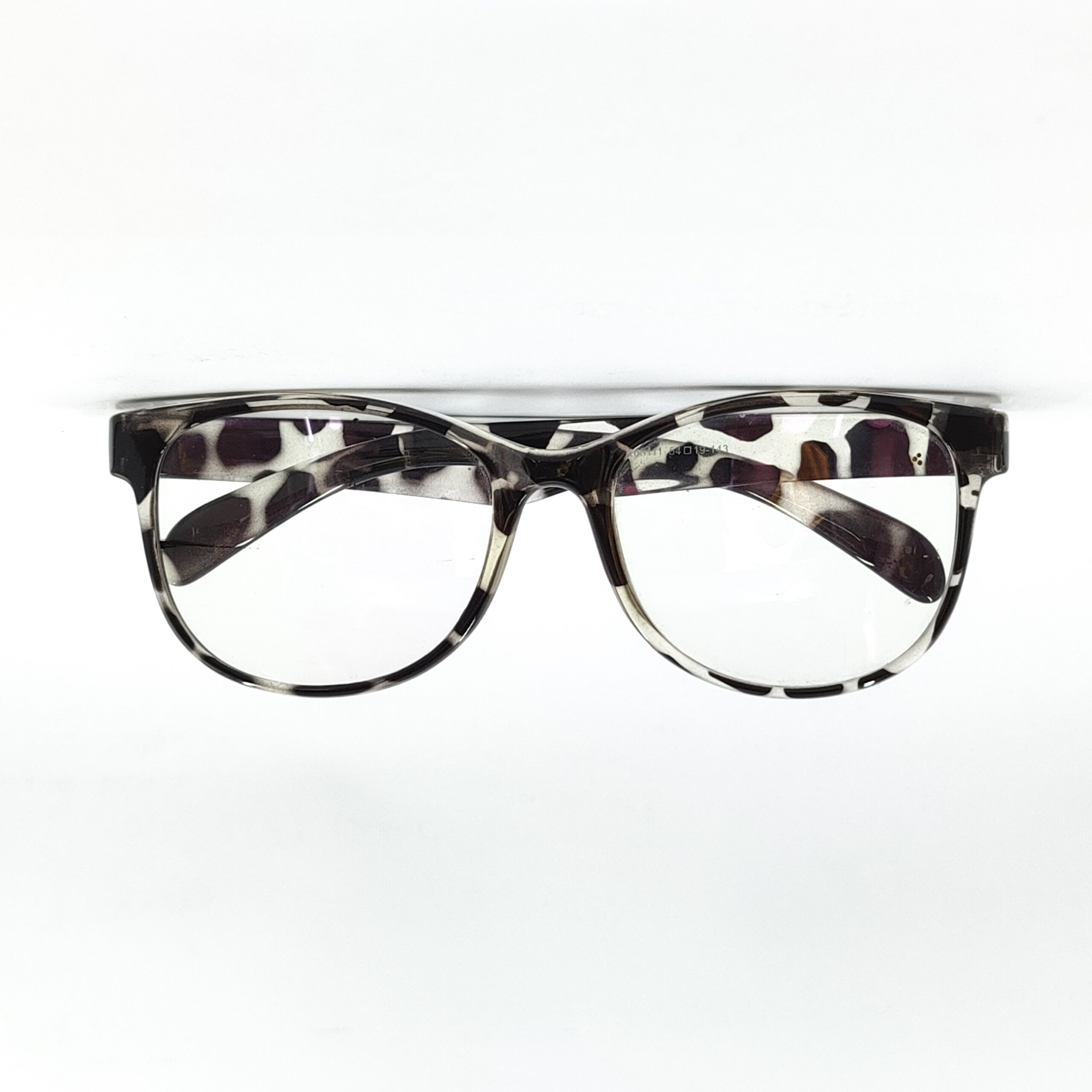 Black & White Snow leopard Print Round Eyeglass Frame