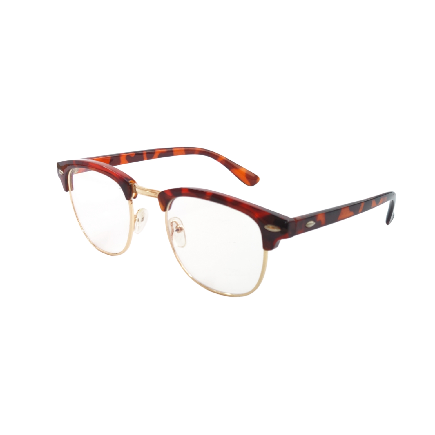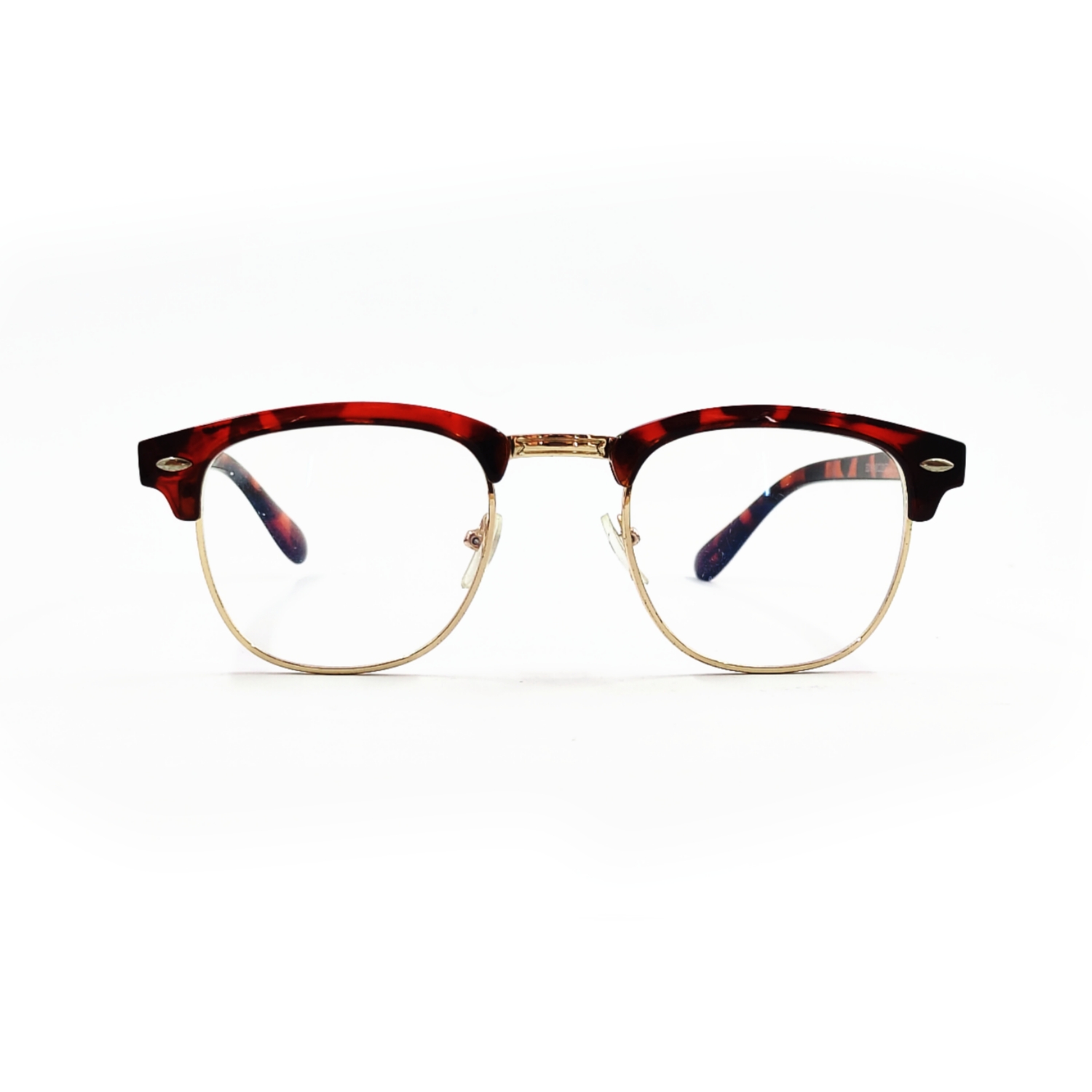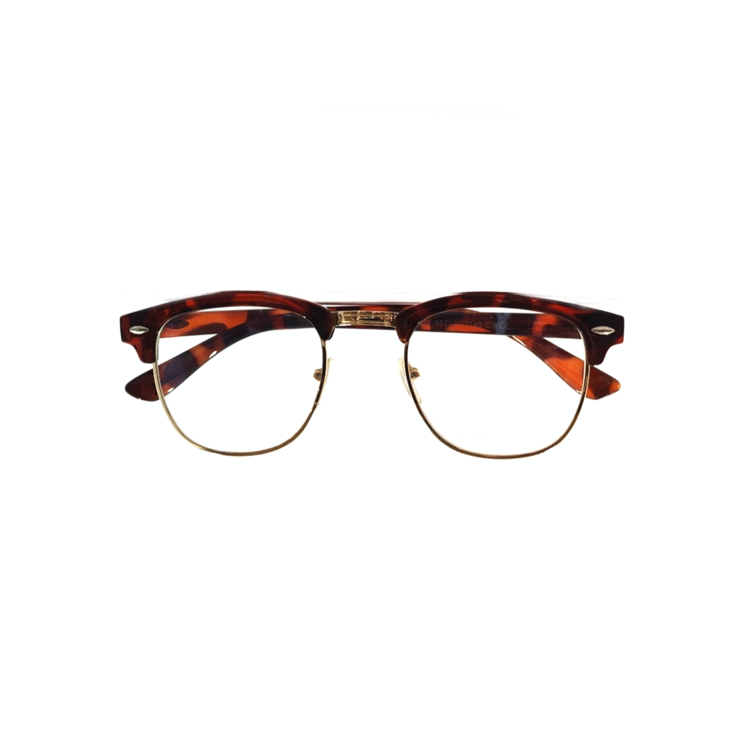 Stylish and timeless, these Clubmaster eyeglasses combine a rich tortoise shell upper frame with elegant golden rims. Perfect for both professional and casual looks, offering comfort, durability, and a vintage charm