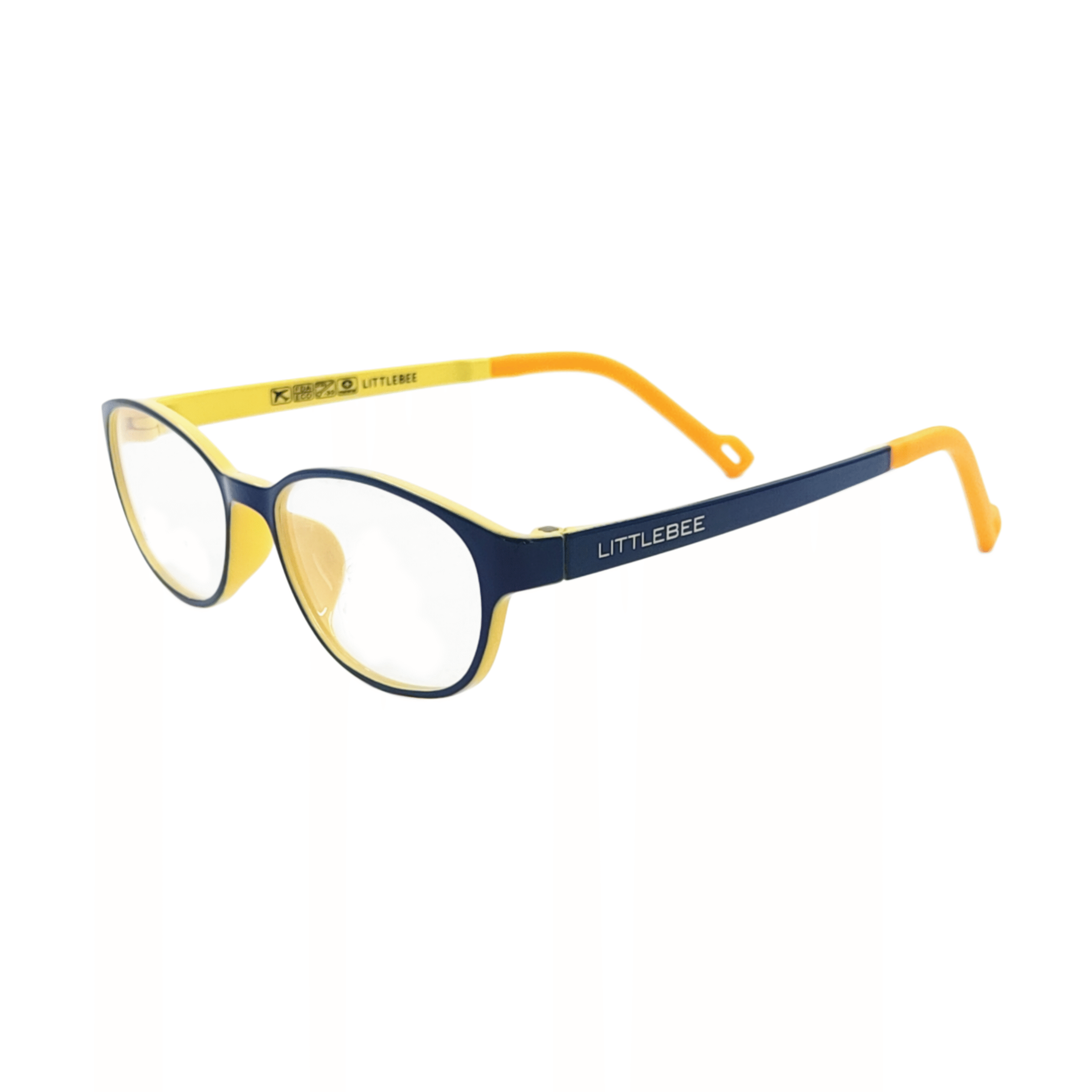 Lightweight and flexible kids’ eyeglasses made from durable material. Oval-shaped frame in a fun blue and yellow color combo, perfect for everyday use and comfortable for long wear.